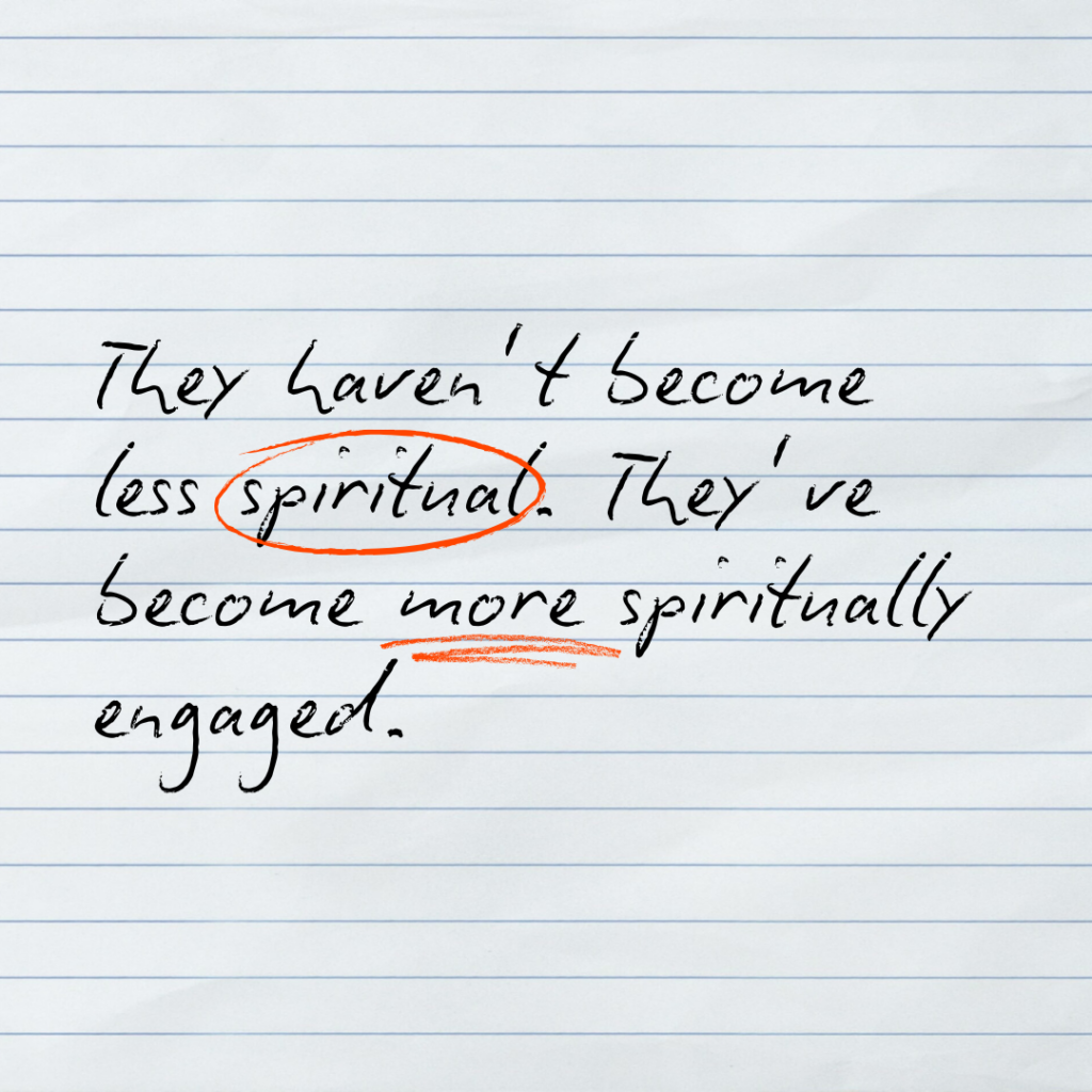 I want you to understand this first: they haven’t become less spiritual. In many cases, they’ve become more spiritually engaged. They’re building something entirely different than what you handed them. And unless you understand what they’re building and why it appeals to them, you’re going to keep offering solutions to problems they don’t think they have.